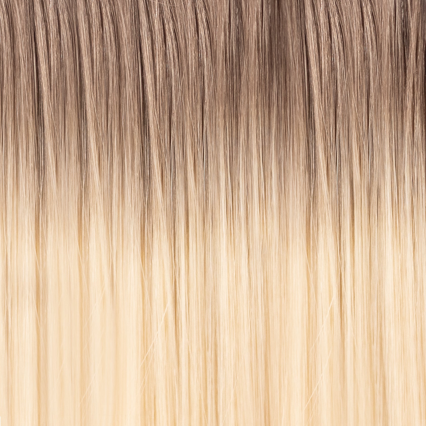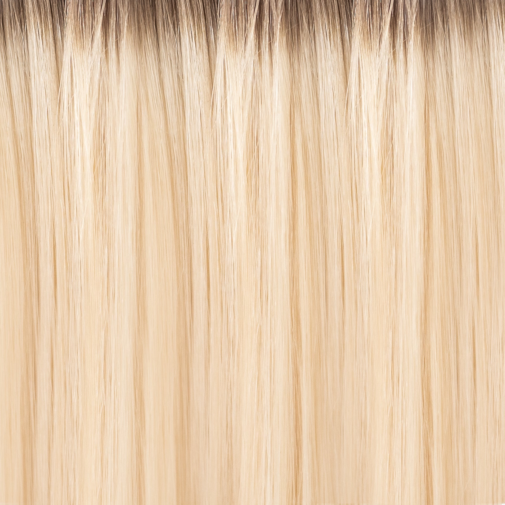 "Freckled Flirt" is a vibrant shade with a dirty blonde root that seamlessly transitions into a bright blonde base. This striking color features a solid, luminous base without highlights, offering a clean and radiant look with a smooth, sophisticated finish.