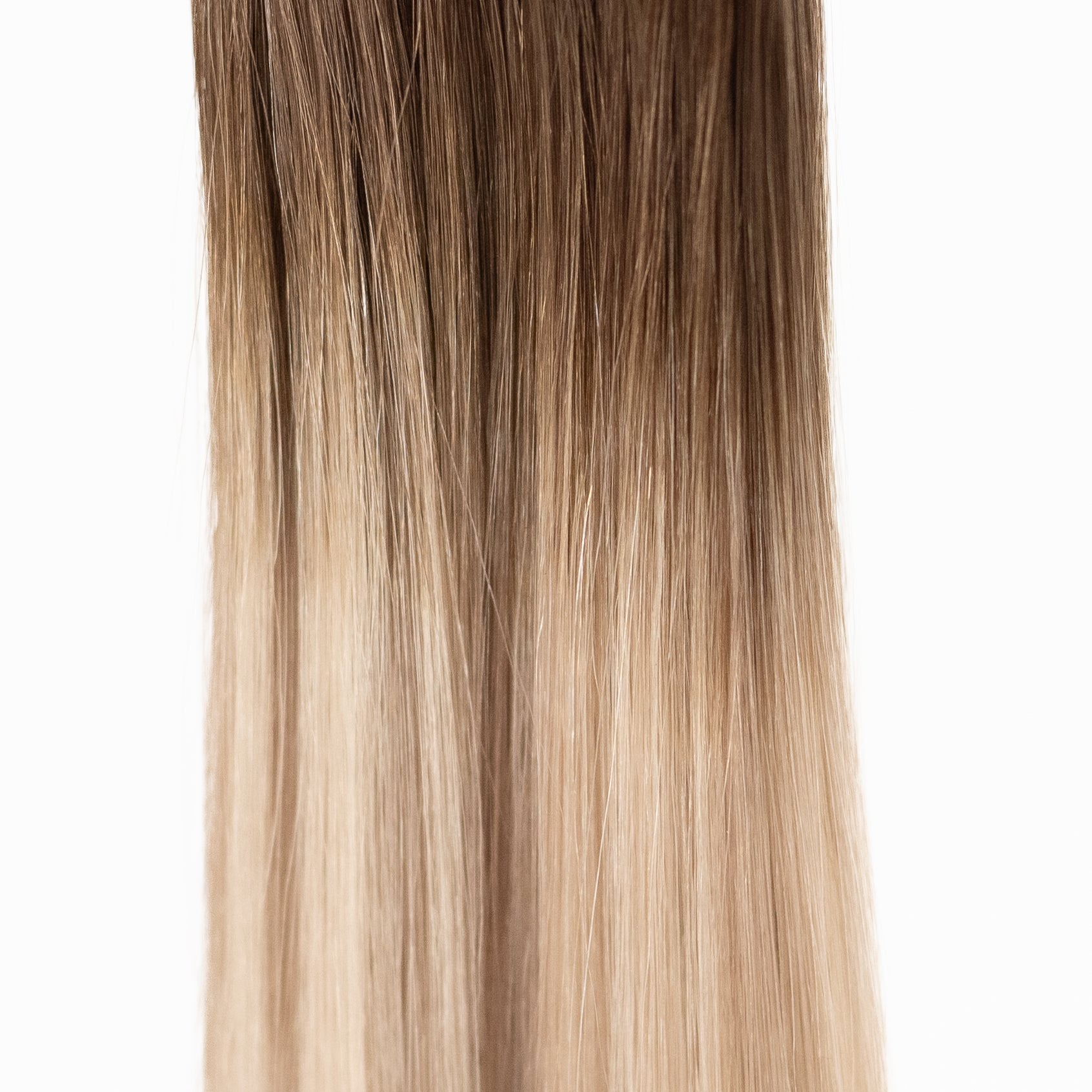 "Sailor" is the epitome of the perfect custom blonde, featuring a meticulously rooted base that effortlessly blends with ashy lowlights and bright blonde highlights. This color offers a refined and dimensional look, combining subtle depth with striking brightness for an effortlessly chic and polished appearance.